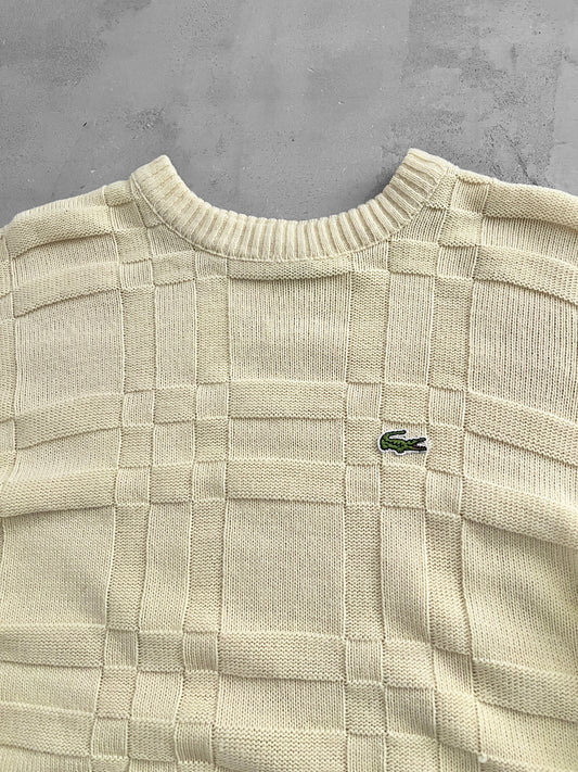 YELLOW LACOSTE KNIT SWEATER - 1990S - M