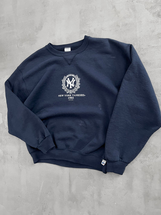 NAVY YANKEES RUSSELL SWEATER - 1990S - L