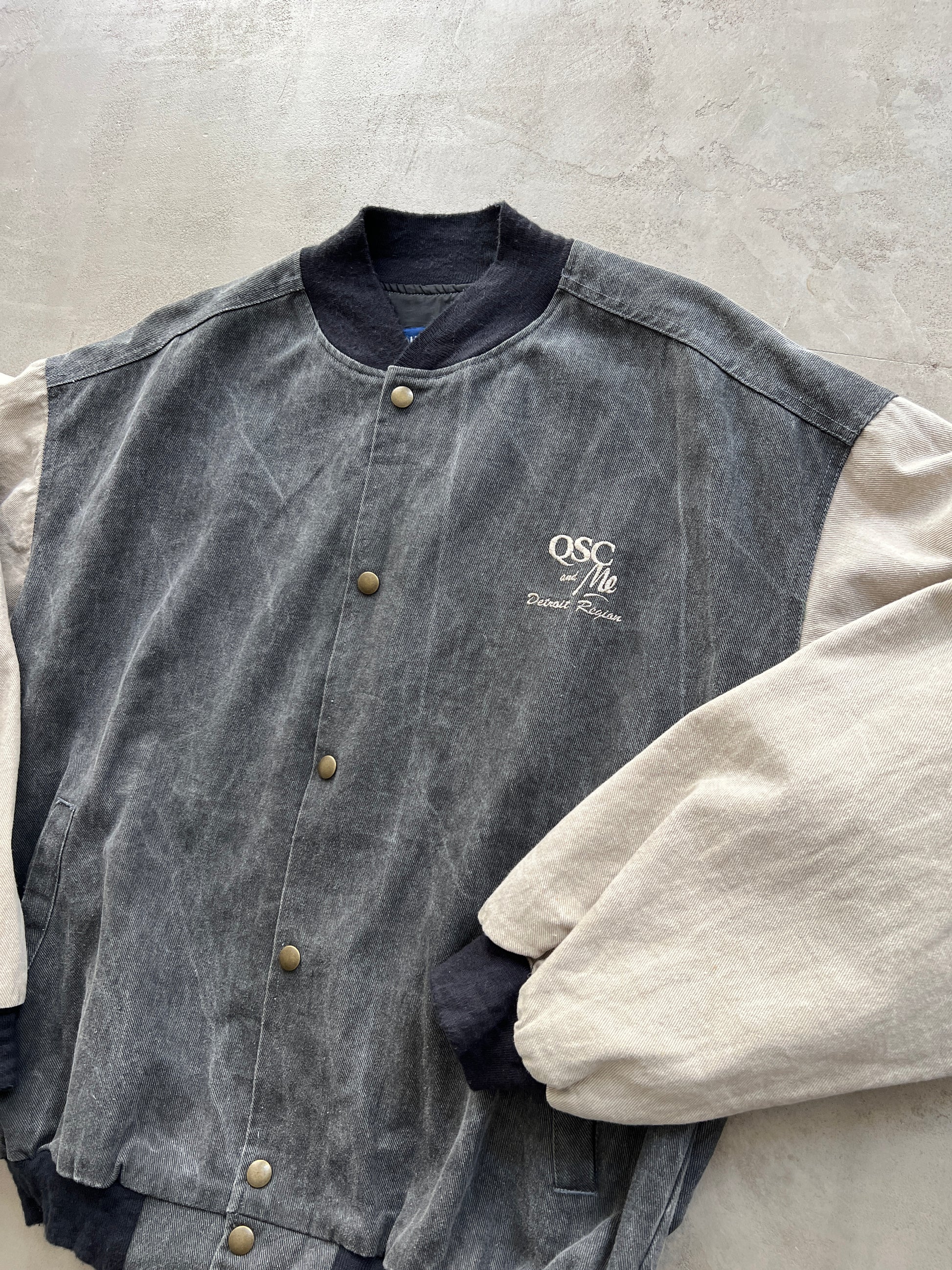 FADED GREY/SAND DETROIT BOMBER - 1990S - L