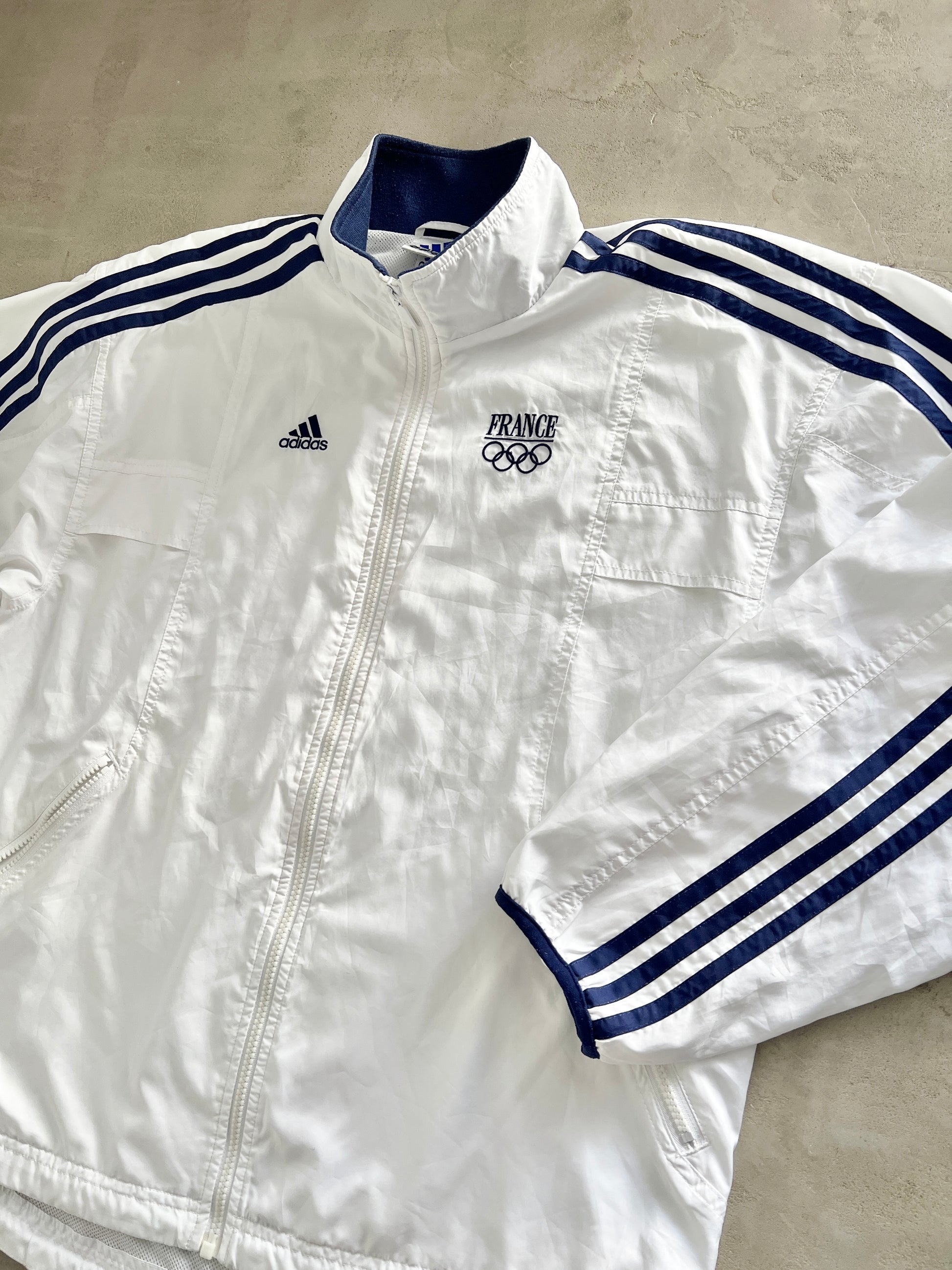 WHITE/NAVY ADIDAS FRANCE JACKET - 2000S - L